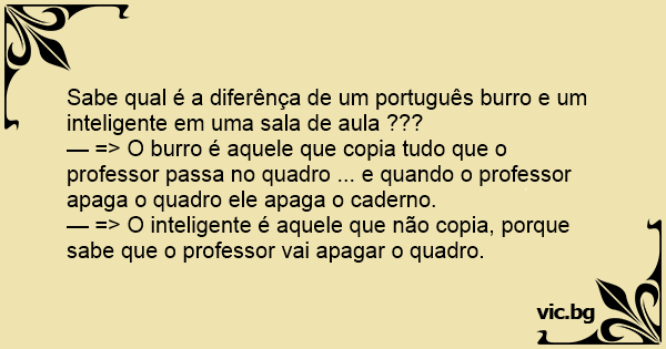 Sabe qual é a diferênça de um português вurrо e um inteligente em uma sala de aula ???