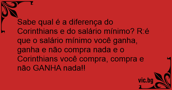 Sabe qual é a diferença do Corinthians e do salário mínimo? R:é que o salário mínimo você ganha, ganha e não compra nada e o Corinthians você compra, compra e não GANHA nada!!