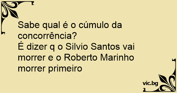 É dizer q o Silvio Santos vai morrer e o Roberto Marinho morrer primeiro