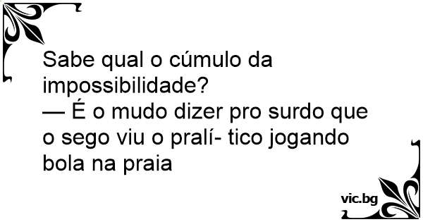 — É o mudo dizer pro surdo que o sego viu o pralí- tico jogando bola na praia