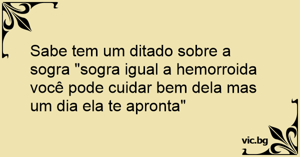 Sabe tem um ditado sobre a sogra "sogra igual a hemorroida você pode cuidar bem dela mas um dia ela te apronta"