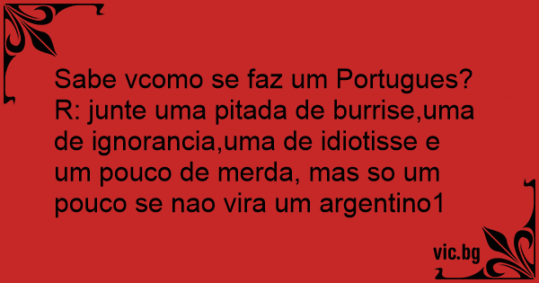 R: junte uma pitada de burrise,uma de ignorancia,uma de idiotisse e um pouco de меrdа, mas so um pouco se nao vira um argentino1