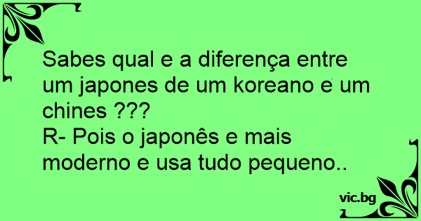 Sabes qual e a diferença entre um japones de um koreano e um chines ???