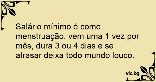 Salário mínimo é como menstruação, vem uma 1 vez por mês, dura 3 ou 4 dias e se atrasar deixa todo mundo louco.