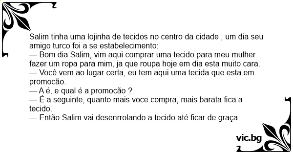 Salim tinha uma lojinha de tecidos no centro da cidade , um dia seu amigo turco foi a se estabelecimento: