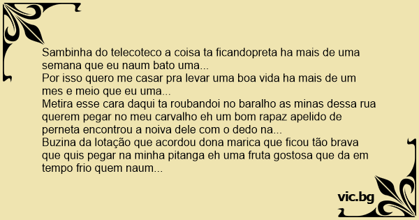 Sambinha do telecoteco a coisa ta ficandopreta ha mais de uma semana que eu naum bato uma...