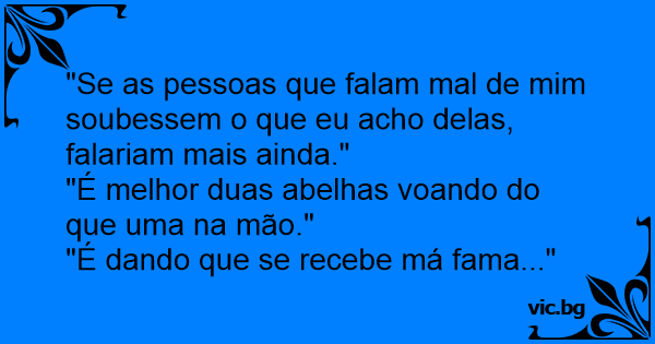 "Se as pessoas que falam mal de mim soubessem o que eu acho delas, falariam mais ainda."