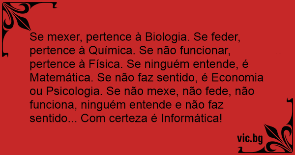 Dacă e verde şi se agită, e biologie. Dacă miroase urît, e chimie. Dacă nu funcţionează, e fizică. Dacă e de neînţeles, e matematică. Dacă nu are sens, e ori economie, ori psihologie.