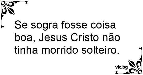 Se sogra fosse coisa boa, Jesus Cristo não tinha morrido solteiro.