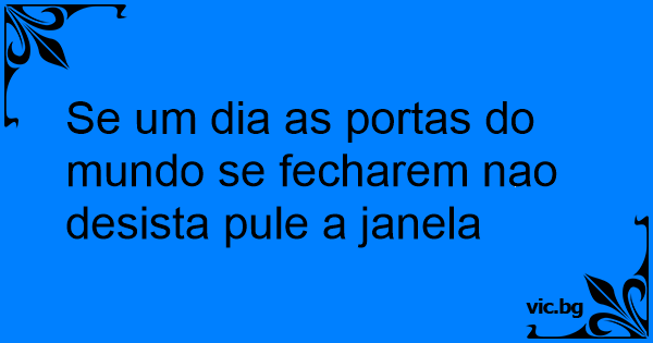 Se um dia as portas do mundo se fecharem nao desista pule a janela