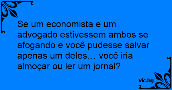 Se um economista e um advogado estivessem ambos se afogando e você pudesse salvar apenas um deles… você iria almoçar ou ler um jornal?