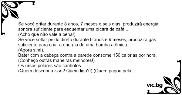 Se você gritar durante 8 anos, 7 meses e seis dias, produzirá energia sonora suficiente para esquentar uma xícara de café...