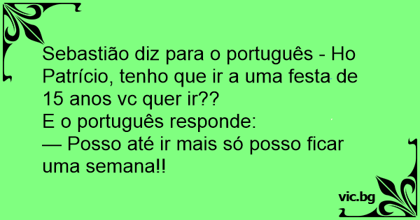 Sebastião diz para o português - Но Patrício, tenho que ir a uma festa de 15 anos vc quer ir??