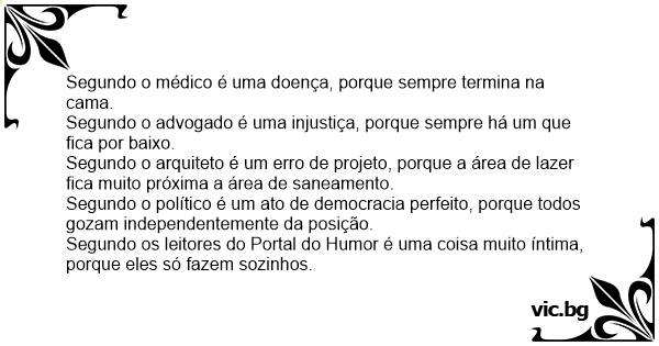 Segundo os leitores do Portal do Humor é uma coisa muito íntima, porque eles só fazem sozinhos.