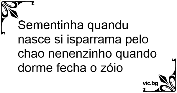 Sementinha quandu nasce si isparrama pelo chao nenenzinho quando dorme fecha o zóio