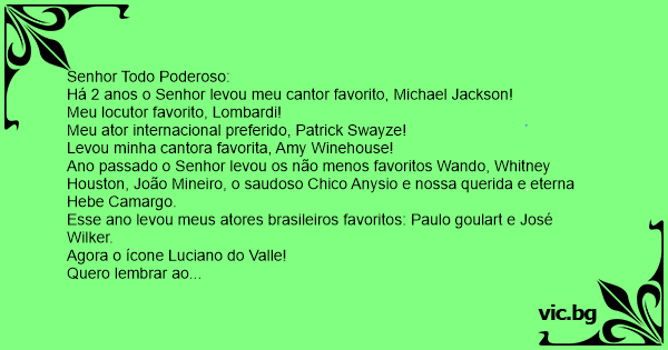 Há 2 anos o Senhor levou meu cantor favorito, Michael Jackson!