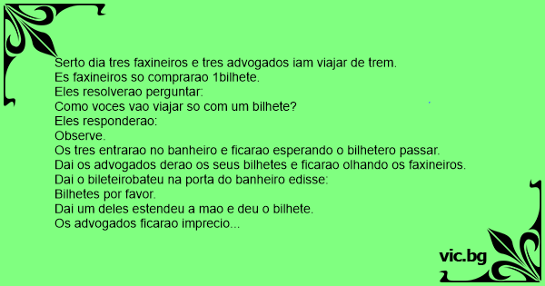 Serto dia tres faxineiros e tres advogados iam viajar de trem.