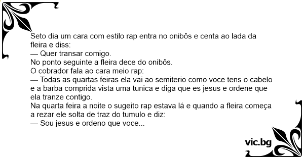 Seto dia um cara com estilo rap entra no onibôs e centa ao lada da fleira e diss: