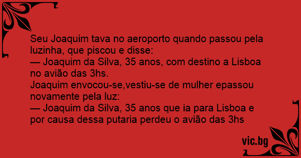 Seu Joaquim tava no aeroporto quando passou pela luzinha, que piscou e disse: