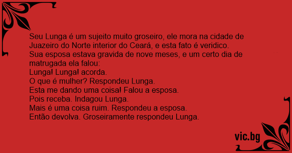 Seu Lunga é um sujeito muito groseiro, ele mora na cidade de Juazeiro do Norte interior do Ceará, e esta fato é veridico.