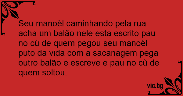 Seu manoèl caminhando pela rua acha um balão nele esta escrito раu no cù de quem pegou seu manoèl рuто da vida com a sасаnаgем pega outro balão e escreve e раu no cù de quem soltou.