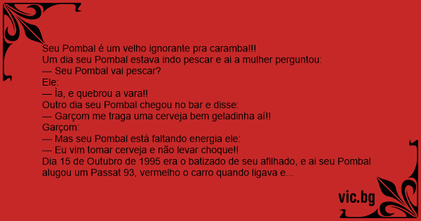 Um dia seu Pombal estava indo pescar e ai a mulher perguntou:
