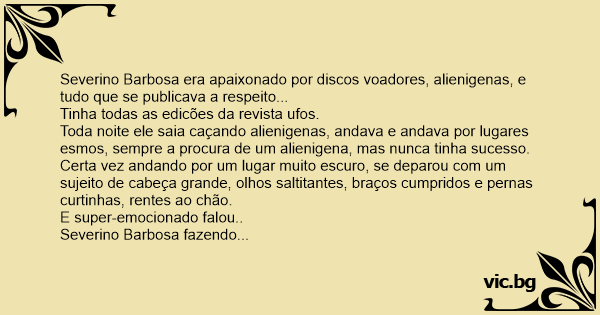 Severino Barbosa era apaixonado por discos voadores, alienigenas, e tudo que se publicava a respeito...