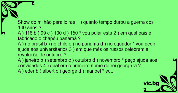 Show do milhão para loiras 1 ) quanto tempo durou a guerra dos 100 anos ?