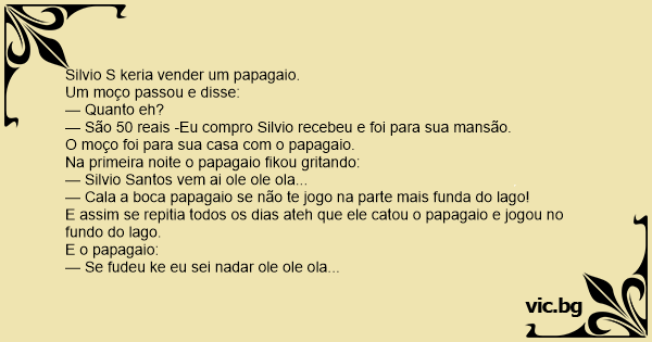 E assim se repitia todos os dias ateh que ele catou o papagaio e jogou no fundo do lago.
