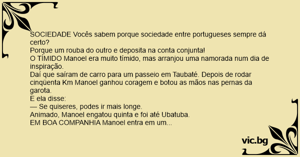 SOCIEDADE Vocês sabem porque sociedade entre portugueses sempre dá certo?