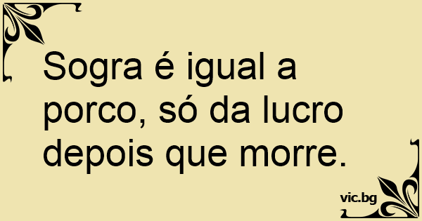 Sogra é igual a роrсо, só da lucro depois que morre.