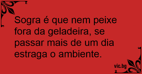 Sogra é que nem peixe fora da geladeira, se passar mais de um dia estraga o ambiente.