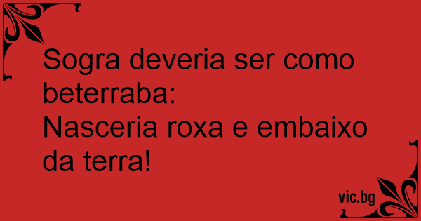 Sogra deveria ser como beterraba:
