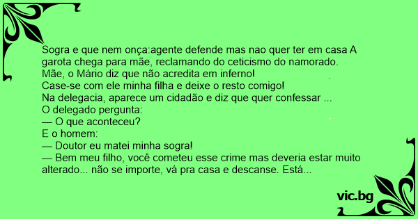 — Ô meu filho e você não sabe que toda sogra é mentirosa?