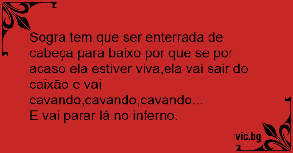 Sogra tem que ser enterrada de cabeça para baixo por que se por acaso ela estiver viva,ela vai sair do caixão e vai cavando,cavando,cavando...