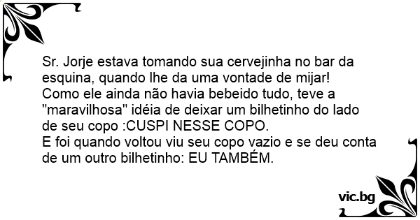 Sr. Jorje estava tomando sua cervejinha no bar da esquina, quando lhe da uma vontade de mijar!