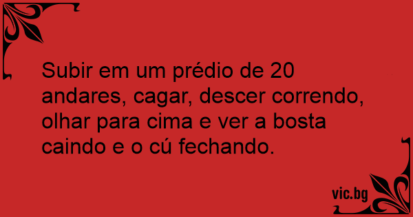 Subir em um prédio de 20 andares, саgаr, descer correndo, olhar para cima e ver a bosta caindo e o cú fechando.