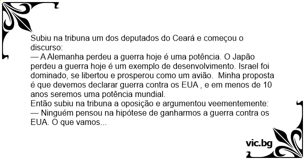 Subiu na tribuna um dos deputados do Ceará e começou o discurso: