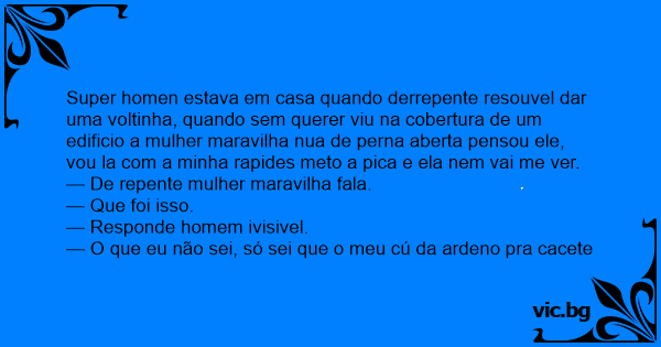 — O que eu não sei, só sei que o meu cú da ardeno pra cacete