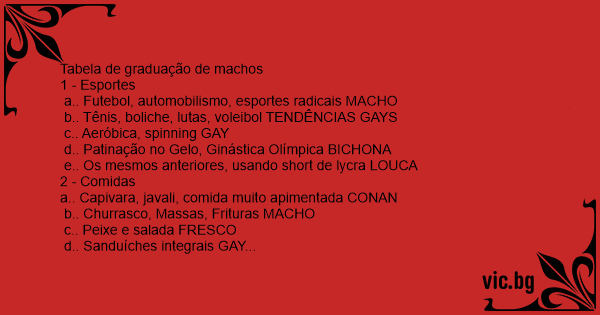 Tabela de graduação de machos