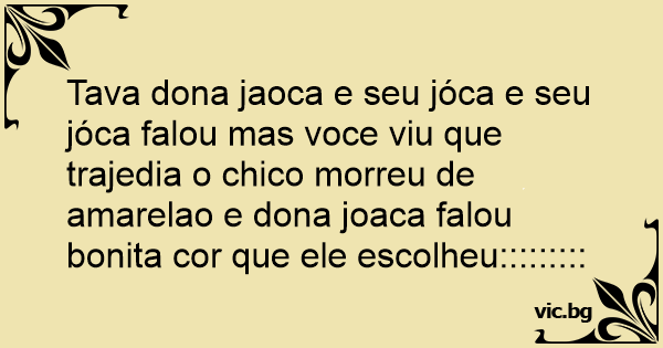 Tava dona jaoca e seu jóca e seu jóca falou mas voce viu que trajedia o chico morreu de amarelao e dona joaca falou bonita cor que ele escolheu:::::::::