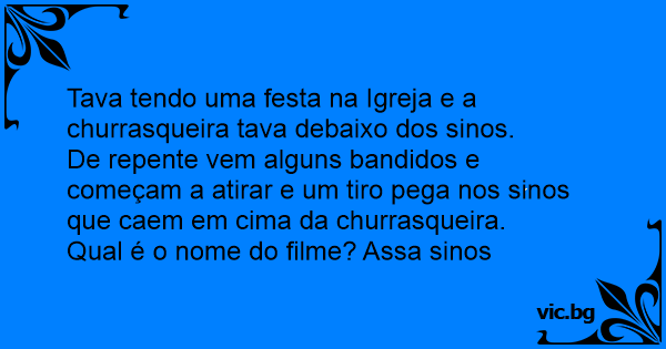 De repente vem alguns bandidos e começam a atirar e um tiro pega nos sinos que caem em cima da churrasqueira.