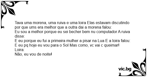 Tava uma morena, uma ruiva e uma loira Elas estavam discutindo por que ums era melhor que a outra dai a morena falou: