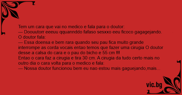 — Nossa doutor funcionou bem eu nao estou mais gaguejando,mais minha namorada nao gostou muito sera que pode fazer outra cirugia para botar meus 30 cm de volta ?