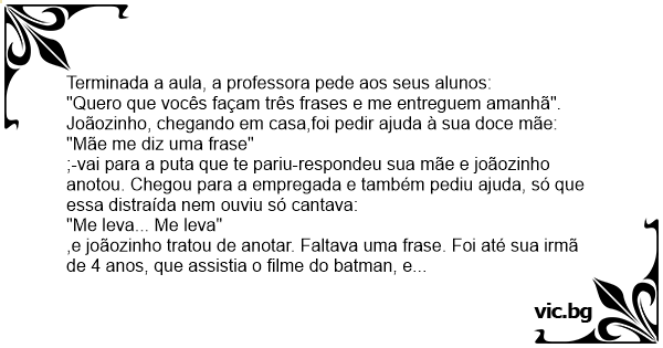 — Joãozinho diga suas três frases!