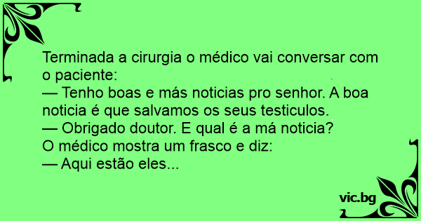 — Tenho boas e más noticias pro senhor. A boa noticia é que salvamos os seus testiculos.