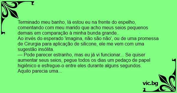 — Pode parecer estranho, mas eu já vi funcionar... Se quiser aumentar seus seios, pegue todos os dias um pedaço de papel higiênico e esfregue-o entre eles durante alguns segundos.
