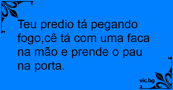 Teu predio tá pegando fogo,cê tá com uma faca na mão e prende o раu na porta.