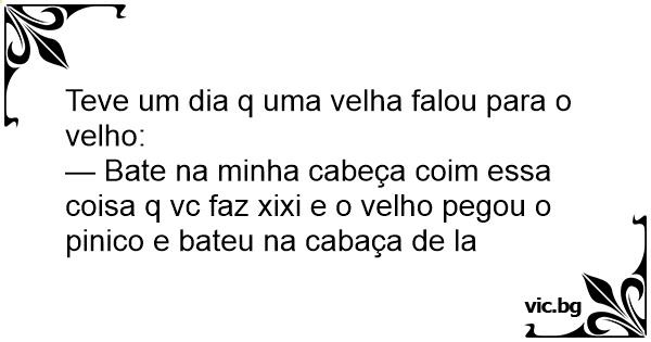 — Bate na minha cabeça coim essa coisa q vc faz xixi e o velho pegou o pinico e bateu na cabaça de la