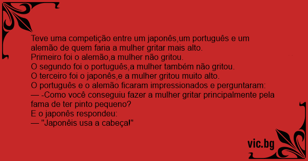 Teve uma competição entre um japonês,um português e um alemão de quem faria a mulher gritar mais alto.